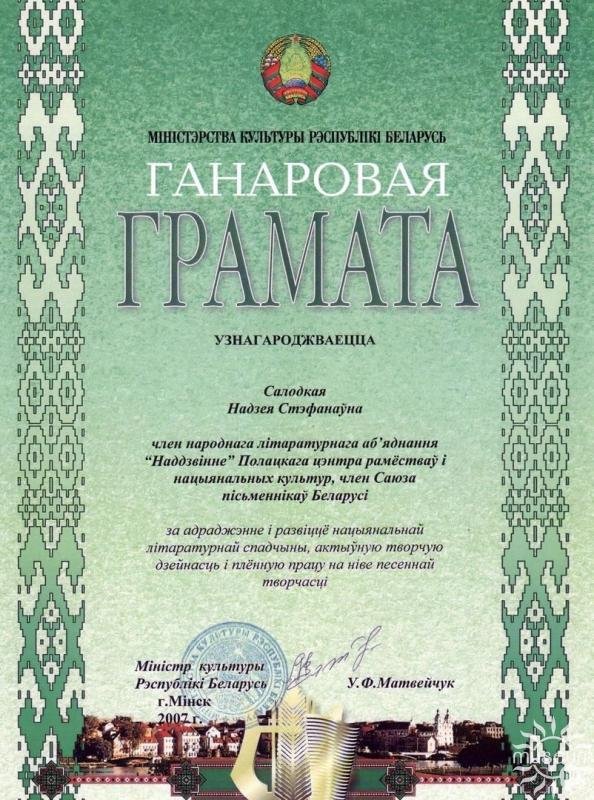 N. S. Solodkaya and director of Polotsk Center for Handicrafts and National Cultures V. Kruk. 2008